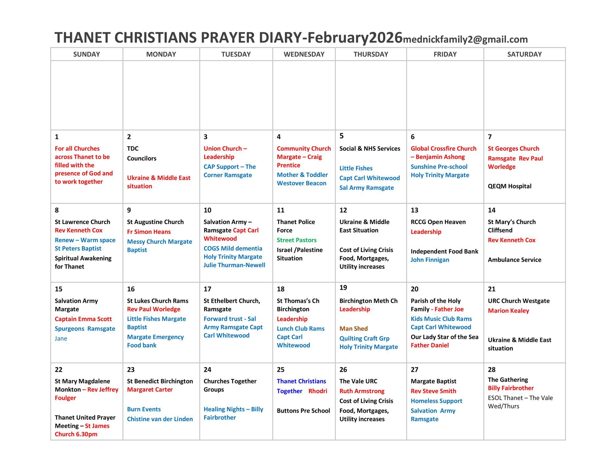 February - Thanet Prayer Diary
